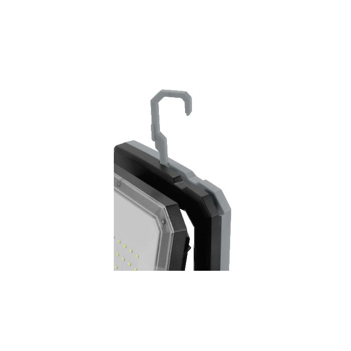 Das robuste und stoßfeste Gehäuse ist besonders widerstandsfähig gegen mechanische Beanspruchung. Dank IPX4 ist die Leuchte vollständig gegen Spritzwasser aus einem beliebigen Winkel geschützt. Somit können Sie sich bei optimaler Ausleuchtung im Innen- und Außenbereich voll auf Ihre Arbeit konzentrieren. Die Leuchte kann mit dem integrierten Haken einfach aufgehängt bzw. mit den integrierten Magneten auf metallischen Oberflächen fixiert werden.