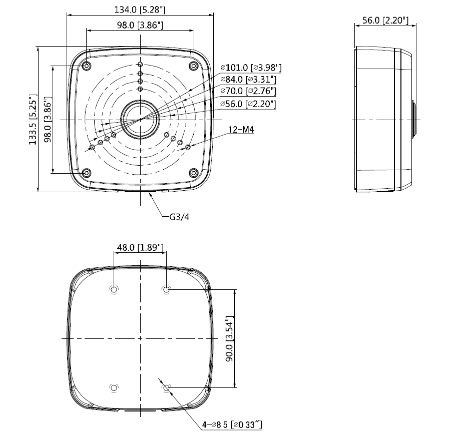 - Maße (L x B x H): 134 mm x 134 mm x 55 mm